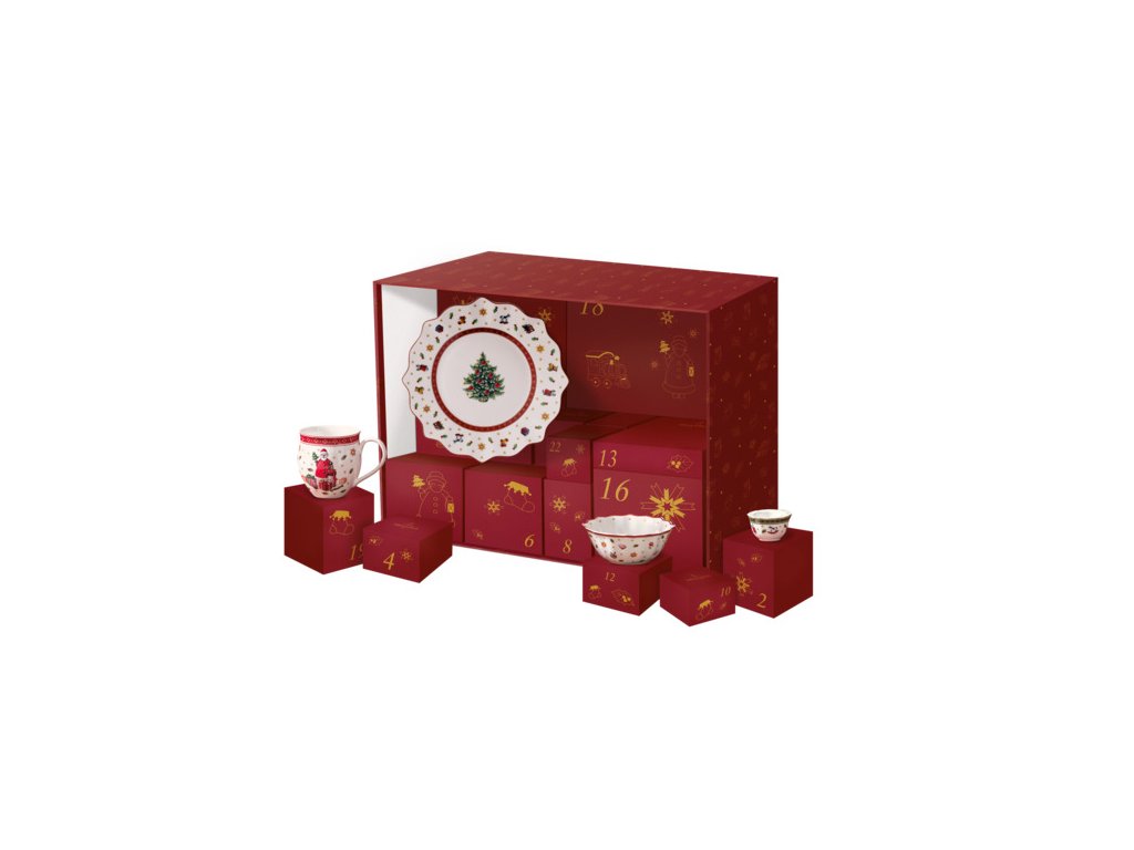 Kolekcia Christmas Toys Memory kombinuje chvíle nostalgie v rozprávkovej krajine zázrakov. Spomienka na časy, keď sme pod stromčekom nachádzali ručne robené hračky. Veď aké by to boli Vianoce bez čarovných dekorácií? Od hracích skriniek až po svietniky. Rýchlo a jednoducho vytvoríte vo svojom dome magickú sviatočnú atmosféru. Každý deň Vás čaká nové prekvapenie z kolekcie Toy's Delight. Advetný kalendár obsahuje 24 produktov Toy's Delight Villeroy & Boch, vrátane 10 exkluzívnych zberateľských kúskov, ktoré nájdete len v tejto súprave.