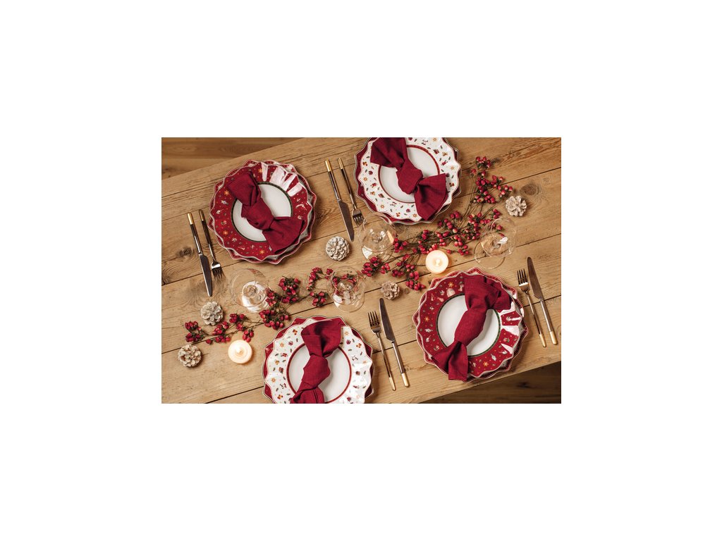 Už dlhé roky Villeroy & Boch prináša počas Vianoc porcelánovú jedálenskú kolekciu Toy's Delight. Sviatočne vyzdobený stôl zaručene vytvorí špeciálnu atmosféru vo vašom domove. Či už preferujete všetko v bielej farbe alebo klasickú kombináciu v červenej a zelenej farbe, s Toy's Delight vždy vytvoríte dokonalú scénu. A zo všetkého najlepšie je, že všetky vzory a farby môžete navzájom kombinovať. Jemné vzory hračiek rozžiaria oči najmenších.