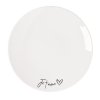 Staňme sa viac osobnými. Váš hrnček, váš odkaz! Náš populárny hrnček už zaujal jasné stanovisko, teraz prichádza tanier s rovnakým posolstvom. Na jednej strane taniera je vytlačený čierny nápis. Tanier vychádza z kolekcie For Me, ale vďaka jednoduchému tvaru a bielemu porcelánu výborne zapadne medzi ostatné kolekcie a ponúka množstvo kombinácií pre stolovanie. Ktorý nápis je váš najobľúbenejší?