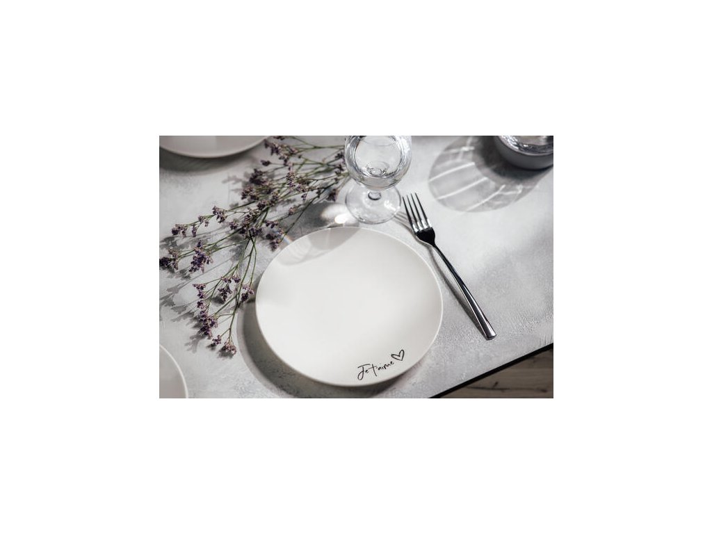 Staňme sa viac osobnými. Váš hrnček, váš odkaz! Náš populárny hrnček už zaujal jasné stanovisko, teraz prichádza tanier s rovnakým posolstvom. Na jednej strane taniera je vytlačený čierny nápis. Tanier vychádza z kolekcie For Me, ale vďaka jednoduchému tvaru a bielemu porcelánu výborne zapadne medzi ostatné kolekcie a ponúka množstvo kombinácií pre stolovanie. Ktorý nápis je váš najobľúbenejší?