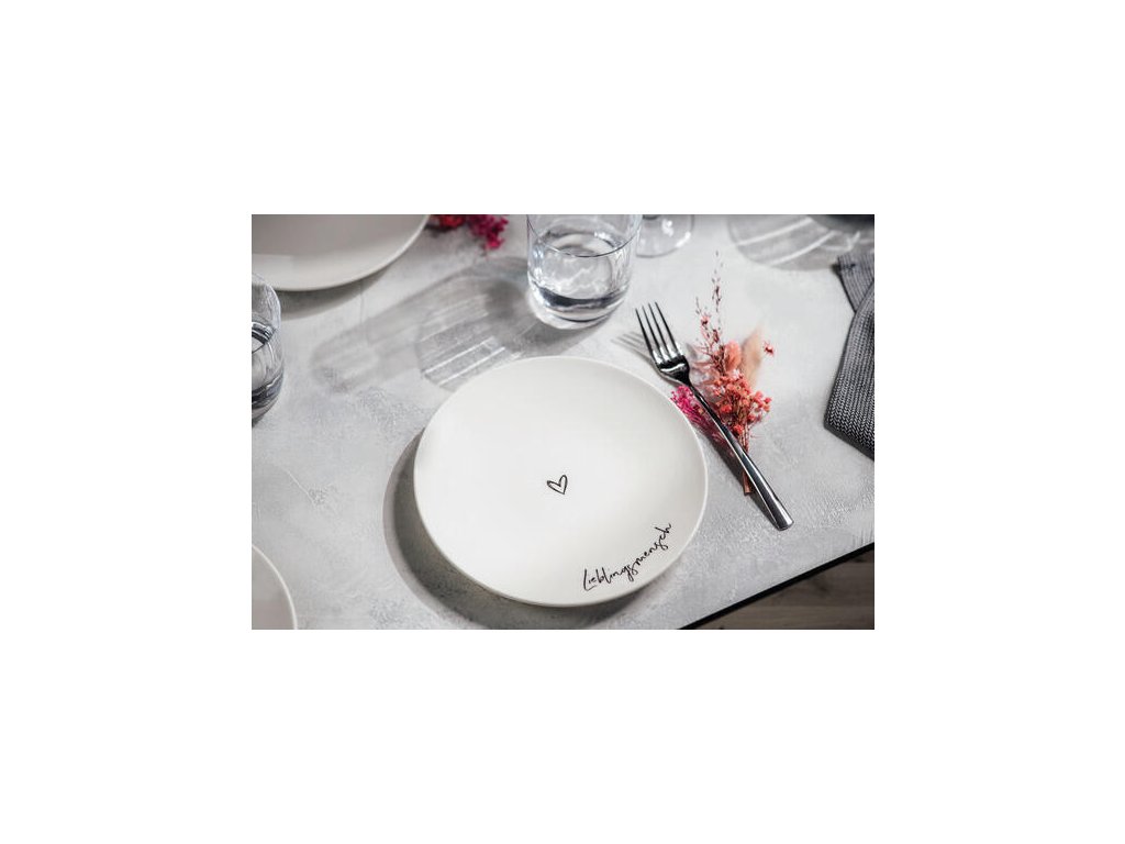 Staňme sa viac osobnými. Váš hrnček, váš odkaz! Náš populárny hrnček už zaujal jasné stanovisko, teraz prichádza tanier s rovnakým posolstvom. Na jednej strane taniera je vytlačený čierny nápis. Tanier vychádza z kolekcie For Me, ale vďaka jednoduchému tvaru a bielemu porcelánu výborne zapadne medzi ostatné kolekcie a ponúka množstvo kombinácií pre stolovanie. Ktorý nápis je váš najobľúbenejší?