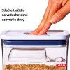 - dóza POP od OXO Good Grips disponuje vzduchotesným viečkom so silikónovým tesnením a patentovým tlačidlom PUSH pre jednoduché otvorenie a zatvorenie
