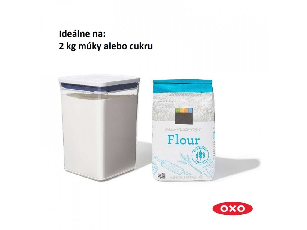 Praktická štvorcová vzduchotesná dóza 4,2 l s jednoduchým systémom otvárania a zatvárania od amerického výrobcu OXO.