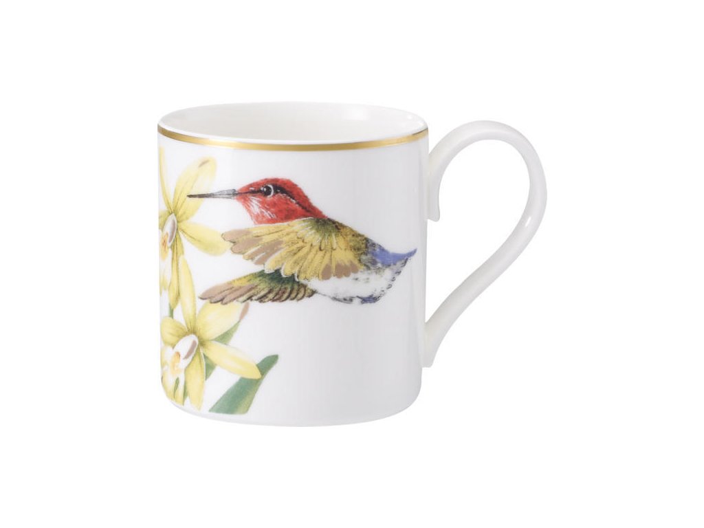 Kolekcia Amazonia vás pozýva objavovať úžasné prostredie tropických dažďových lesov. Prémiový kostný porcelán vychádzajúci z kolekcie Modern Grace je zdobený jemnými dotykmi zlata, vzor ožíva priamo pred vami pôsobivými obrázkami žltých orchideí, mučeniek belasých, kolibríkov a motýľov. Intenzita farieb a žiarivý vzor vytvárajú takmer trojrozmerný efekt - záhadný, úchvatný a nádherný.