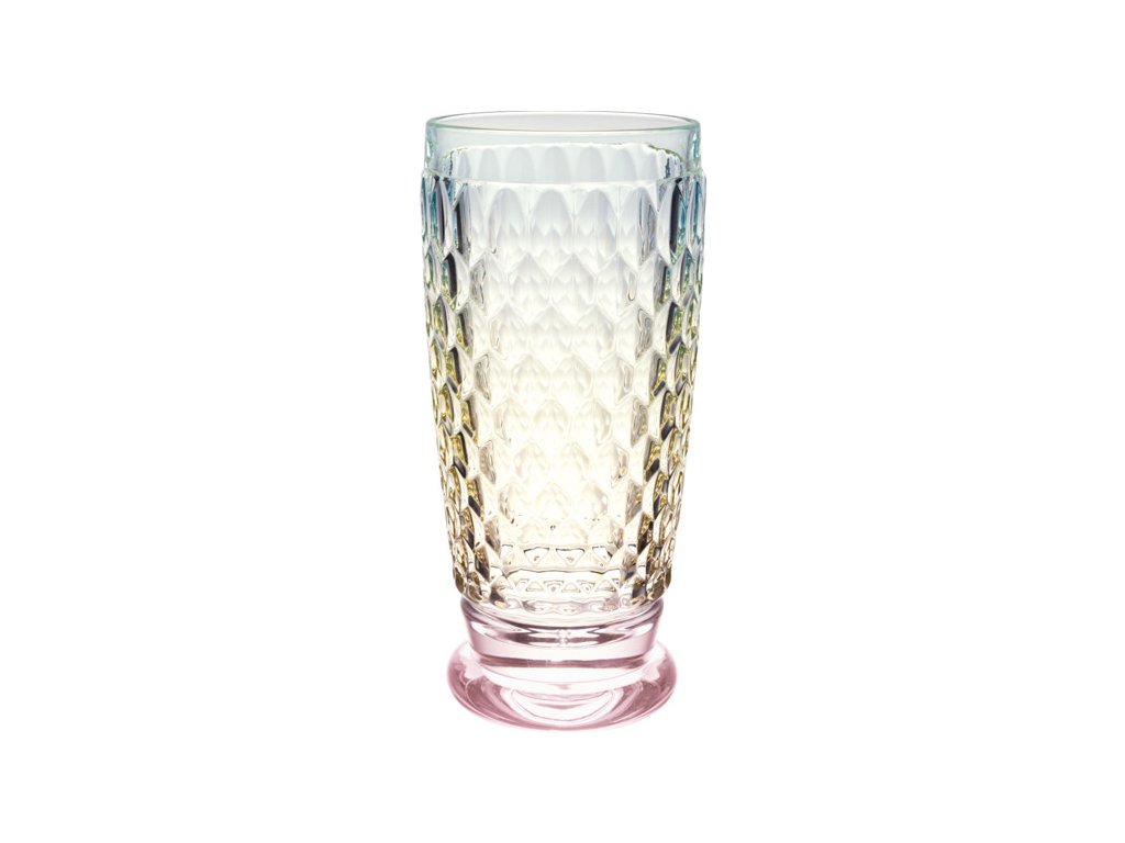 Očarujúci fazetový dizajn a robustné vysokokvalitné krištáľové farebné sklo robia z kolekcie Boston Pearl atraktívneho spoločníka na každý deň. Farebné dúhovoružové sklo sa trblieta v štyroch rozdielnych odtieňoch, čím sa stane ideálnym spoločníkom pre každý typ stolovania. Servírujte chladenú minerálnu vodu, čerstvo odšťavenú pomarančovú šťavu alebo osviežujúci nápoj s nábojom. Uhaste smäd štýlovo.
