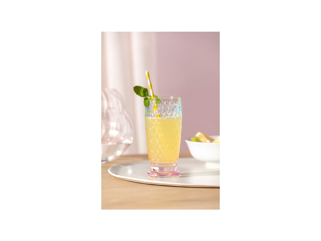 Očarujúci fazetový dizajn a robustné vysokokvalitné krištáľové farebné sklo robia z kolekcie Boston Pearl atraktívneho spoločníka na každý deň. Farebné dúhovoružové sklo sa trblieta v štyroch rozdielnych odtieňoch, čím sa stane ideálnym spoločníkom pre každý typ stolovania. Servírujte chladenú minerálnu vodu, čerstvo odšťavenú pomarančovú šťavu alebo osviežujúci nápoj s nábojom. Uhaste smäd štýlovo.