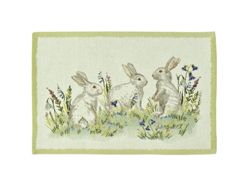 Gobelínové prestieranie 32 x 48 cm, vzor zajace z jarnej kolekcie Bunnies od nemeckého výrobcu Sander.