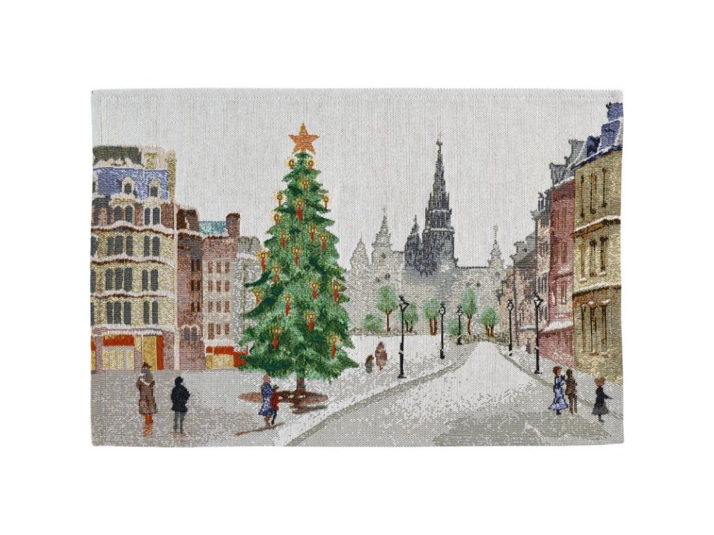 Prestieranie s motívom Vianoc z gobelínu z vianočnej kolekcie X-MAS in Town od nemeckého výrobcu Sander.