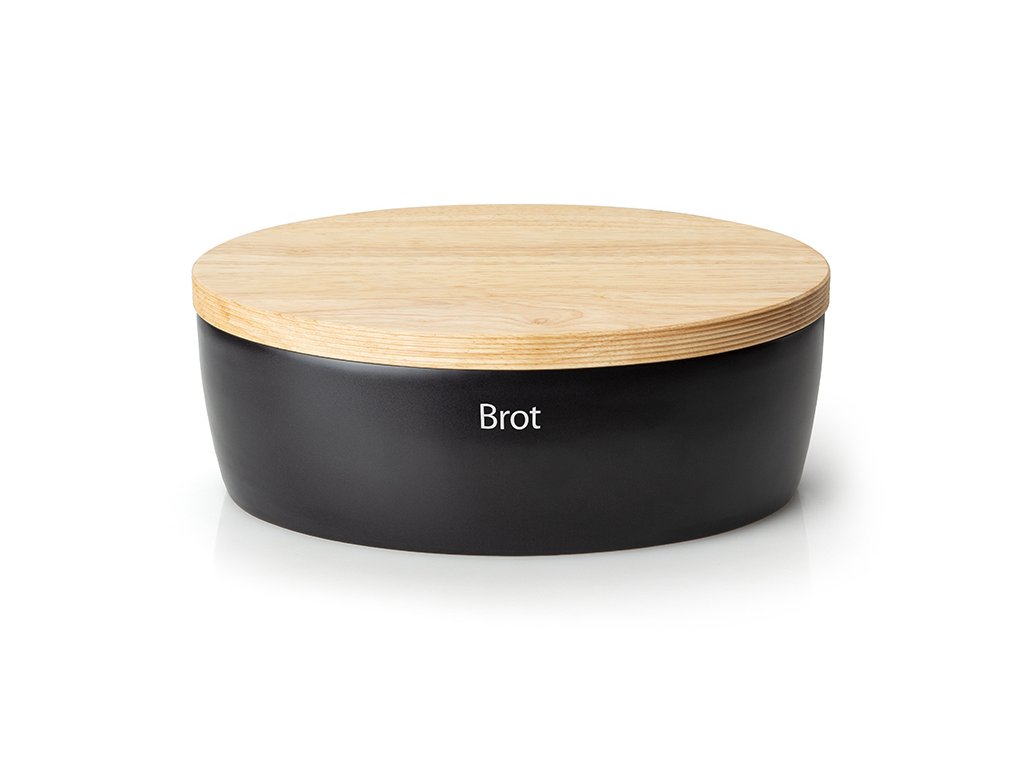 Keramický chlebník v čiernej farbe s dreveným uzáverom/doskou na krájanie od nemeckého výrobcu Continenta.