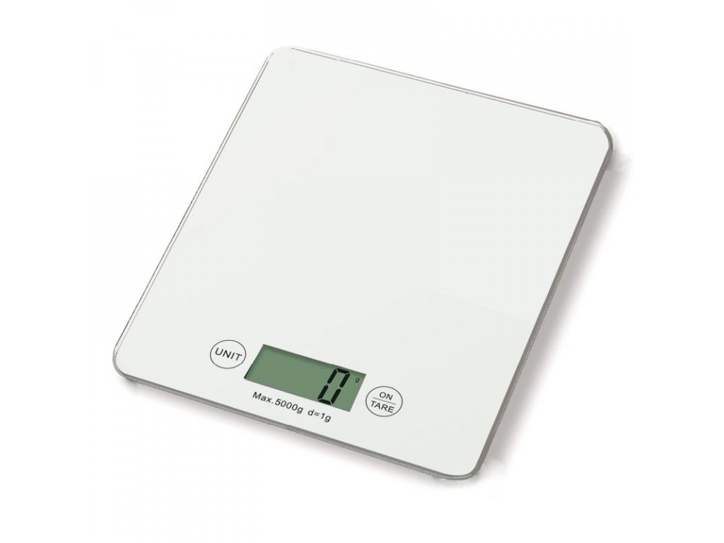 Moderná presná kuchynská digitálna váha v bielej farbe od nemeckého výrobcu Weis.
