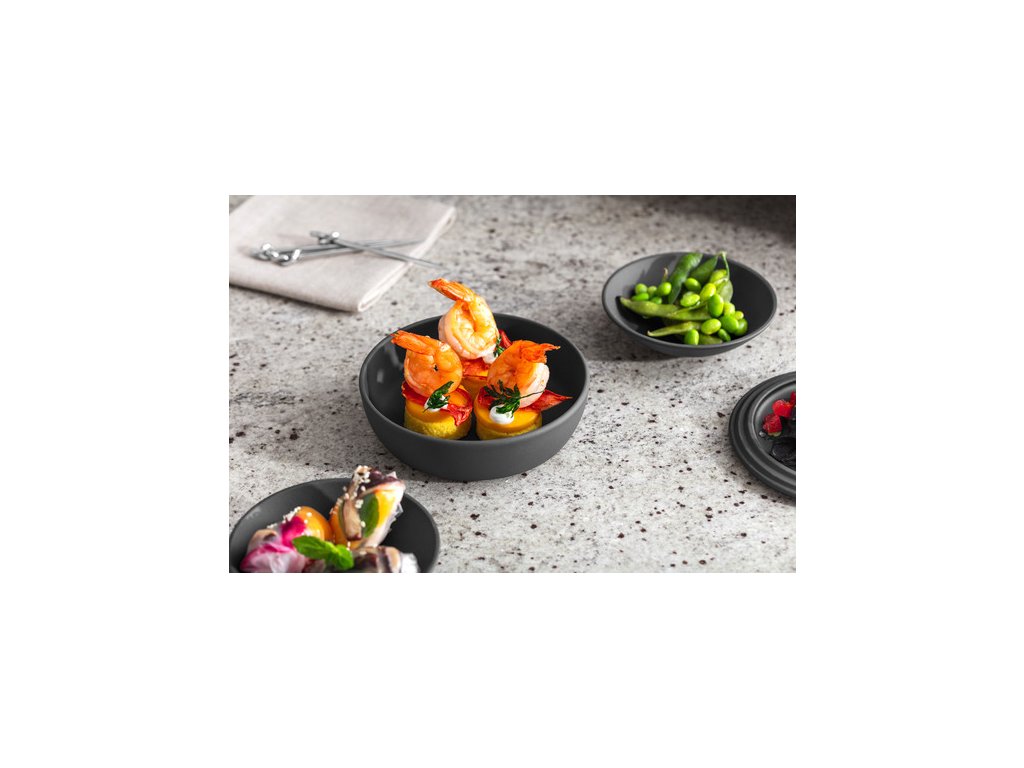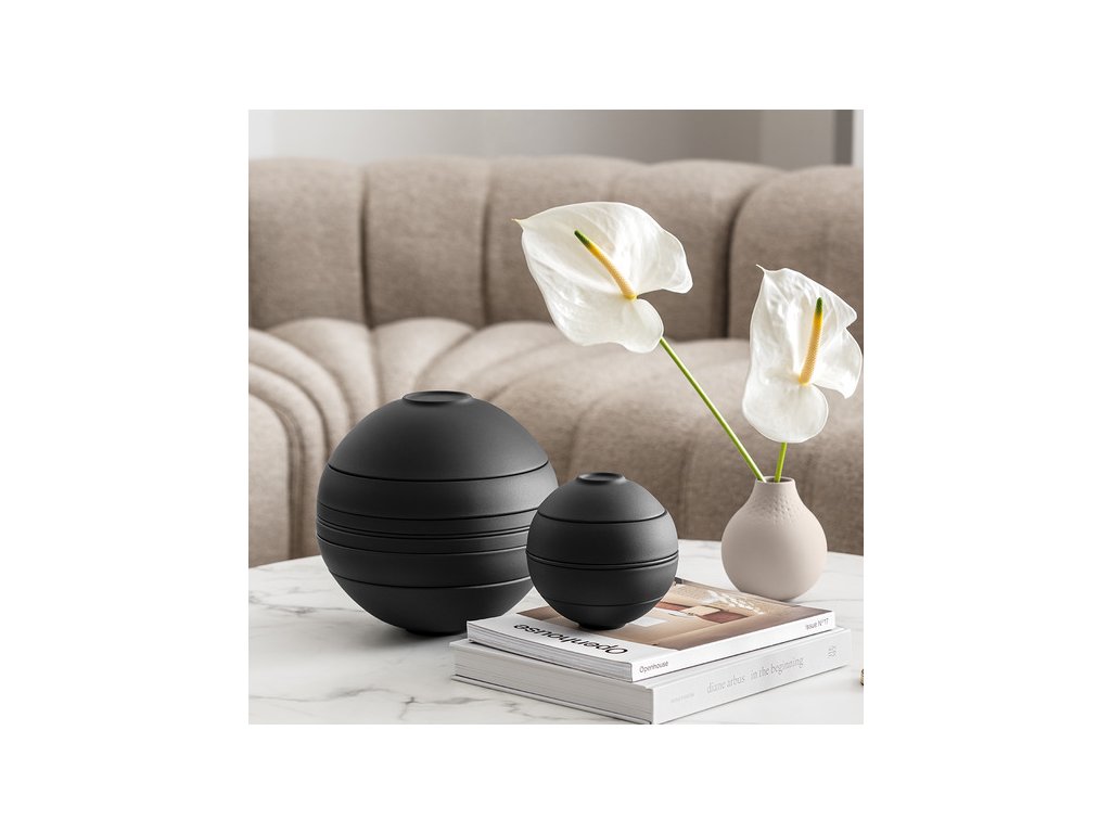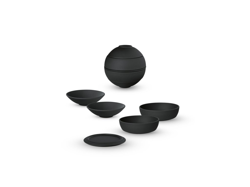 Servis na predjedlo alebo malé občerstvenie La petite Boule black (obsahuje 2 x miska, 2 x plochá miska a 1 x servírovací tanier) z prémiového porcelánu z ikonickej kolekcie Iconic od nemeckého výrobcu Villeroy & Boch.