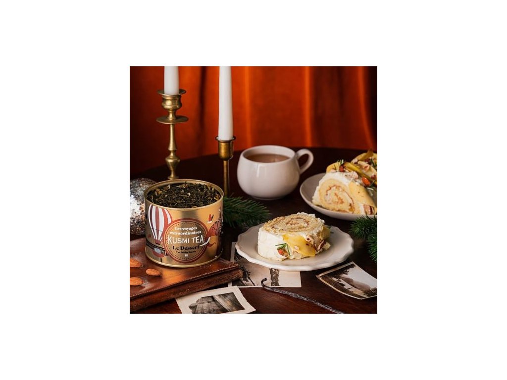 Nová exkluzívna vianočná čajová zmes Le Dessert v limitovanej edícii od francúzskeho výrobcu Kusmi Tea vám vyčarí v okamžiku krásne spomienky na tieto najobľúbenejšie sviatky. Organický zelený čaj je ochutený jablkom, vanilkou, mandľami a vznikol ako pripomienka sviatočnej pohody, keď sa všetko zastaví a ľudia sa oddávajú zimným chvíľam oddychu.