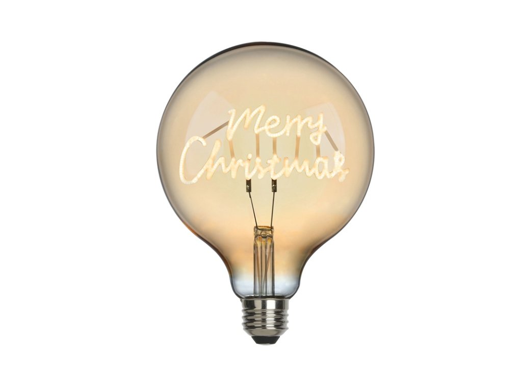 LED filamentová žiarovka s nápisom Merry Christmas s päticou E27 od nemeckého výrobcu Sompex.