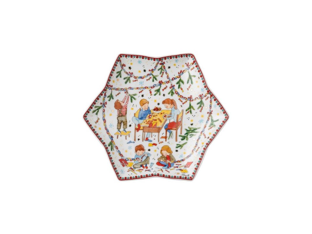 Miska v tvare hviezdy z prémiového porcelánu z výročnej kolekcie 2024 Weihnachtsleuchten s ilustráciami od Renáty Fučíkovej od nemeckého výrobcu Hutschenreuther.