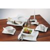 Objavte úspešný príbeh za luxusným dizajnom kolekcie NewWave. Neporovnateľné tvary porcelánu priťahujú pohľady na každom stole. Elegantný, biely riad upúta jedinečným dizajnom, ktorý dáva vyniknúť unikátnym líniam a silnej charizme. Táto kolekcia bola raz nominovaná na "TRENDOVÝ RIAD ROKA" a odvtedy sa stal skutočným predajným hitom. Progresívna forma kolekcie NewWave spôsobila revolúciu v tradičnej okrúhlej forme riadu. Geometrické tvary - štvorec, obdĺžnik a trojuholník - spojené s vlnitými krivkami sa prezentujú ako výstredná atrakcia vo svete porcelánu.