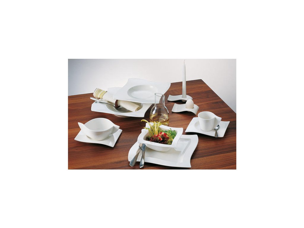 Objavte úspešný príbeh za luxusným dizajnom kolekcie NewWave. Neporovnateľné tvary porcelánu priťahujú pohľady na každom stole. Elegantný, biely riad upúta jedinečným dizajnom, ktorý dáva vyniknúť unikátnym líniam a silnej charizme. Táto kolekcia bola raz nominovaná na "TRENDOVÝ RIAD ROKA" a odvtedy sa stal skutočným predajným hitom. Progresívna forma kolekcie NewWave spôsobila revolúciu v tradičnej okrúhlej forme riadu. Geometrické tvary - štvorec, obdĺžnik a trojuholník - spojené s vlnitými krivkami sa prezentujú ako výstredná atrakcia vo svete porcelánu.