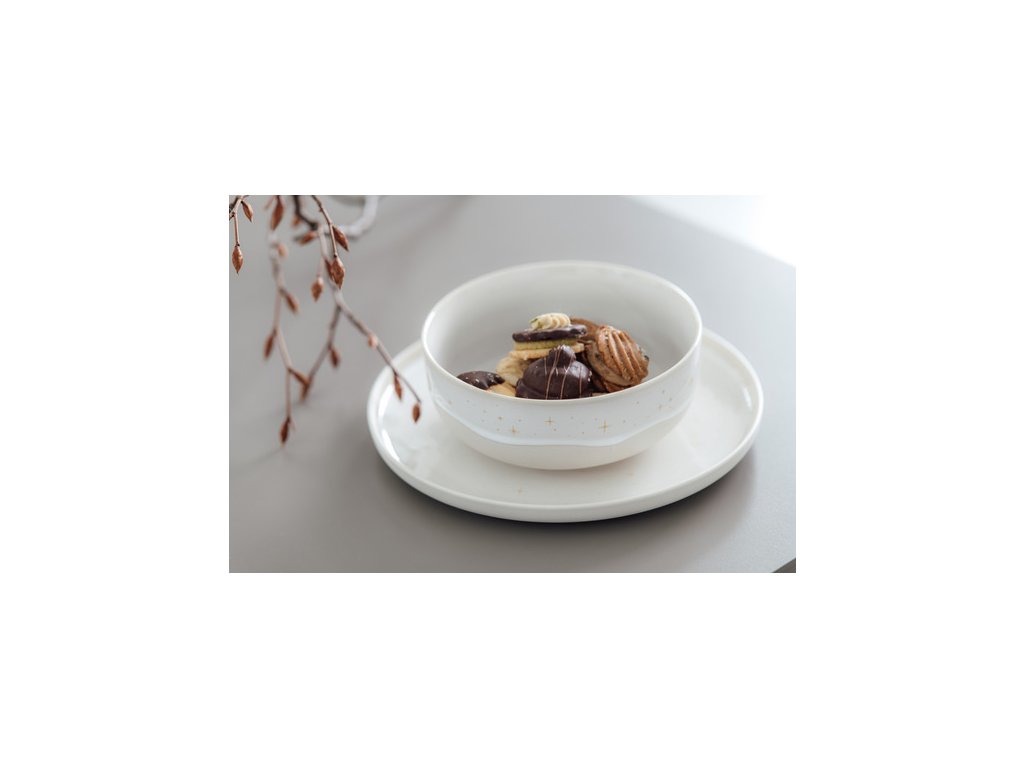 Domáce medovníky a koláče budú chutiť dvakrát viac, keď sa budú servírovať na štýlových sviatočných tanieroch, spolu s pohármi, miskami a hrnčekmi. Skutočná hviezda medzi jednotlivými vzormi, dizajn nočnej zimnej oblohy vám doma vyčarí pravú sviatočnú atmosféru. Kolekcia Winter Glow vzdáva poctu severským vianočným tradíciám. Na biely porcelán je nanesená glazúra, ktorá svojim vzhľadom pripomína sneh a ľad. Každý jeden kus je ozdobený malými zlatými hviezdičkami a snehovými vločkami.