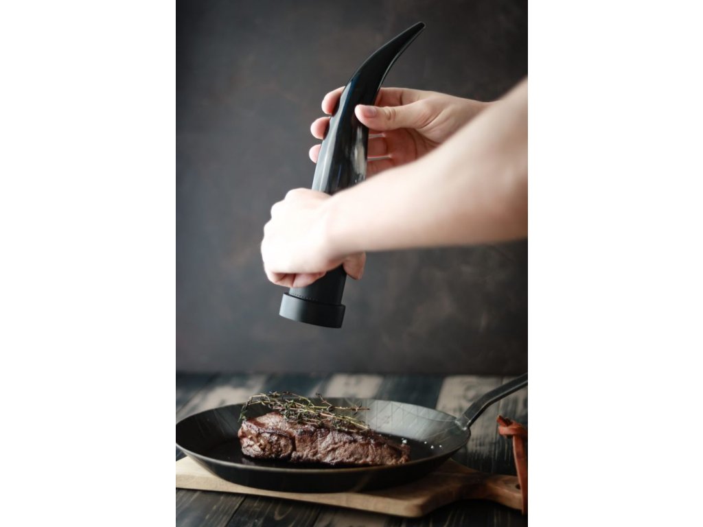 Francúzska spoločnosť Forge de Laguiole sa už viac ako 150 rokov špecializuje na výrobu nožov Laguiole. Avšak nie je nôž ako nôž, originál je len jeden. Nože sa vyrábajú vo francúzskej obci Laguiole a prostriedky na ich výrobu pochádzajú z lokálnych zdrojov. Kvalita ocele a remeselná zručnosť zaručujú mimoriadnu ostrosť čepele. Na nožoch Laguiole nájdete ikonický symbol včely - hotové umelecké dielo. Rúčky sú vyrobené z dreva, rohov, kostí a dokonca aj mamutích zubov. Preto došlo aj na rozšírenie ponuky o ručné mlynčeky na soľ a korenie, ktorých rúčka je vyrobená zo skutočných kravských rohov plemena Aubrac. Počas rokov sa mlynčeky stali ikonickými produktami a v roku 2024 došlo k ich redizajnu. Originálny Forge de Laguiole® mlynček na korenie prinesie na váš stôl nápaditosť a očarí hostí. Každý model má drevenú základňu, ktorá je obalená v elegantnom puzdre z pravej kože, sivá je pre soľ a čierna pre korenie. Skvelou novinkou je u tohto modelu nový mlecí mechanizmus, ktorý je keramický a má trikrát väčšiu kapacitu ako predchádzajúci typ. Mechanizmus má niekoľko stupňov nastavenia hrubosti mletia. Dodávané sú v elegantnom čiernom textilnom vrecúšku.