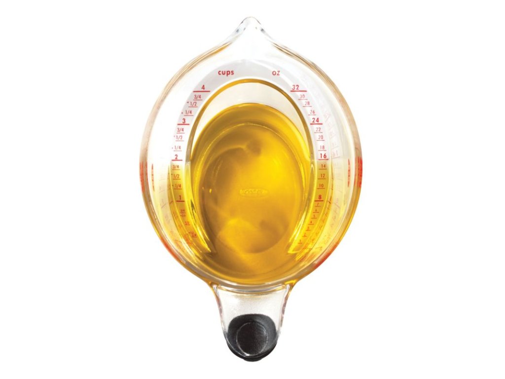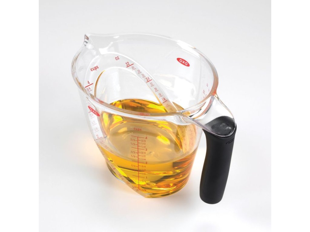 Kuchynská odmerka 1 l s vnútornou ryskou od amerického výrobcu OXO. Aktuálne množstvo vidíte aj zhora pri nalievaní ingrediencií.