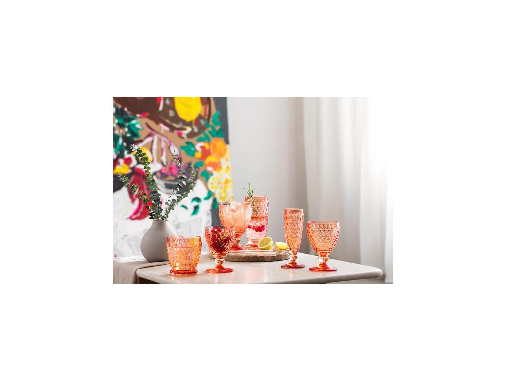 Očarujúci fazetový dizajn a robustné vysokokvalitné krištáľové farebné sklo robia z kolekcie Boston coloured atraktívneho spoločníka na každý deň. Servírujte chladenú minerálnu vodu, čerstvo odšťavenú pomarančovú šťavu alebo osviežujúci nápoj s nábojom. Uhaste smäd štýlovo.