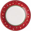 Červený plytký tanier 26,8 cm z prémiového porcelánu z najobľúbenejšej vianočnej kolekcie Toy's Delight Specials od nemeckého výrobcu Villeroy & Boch.