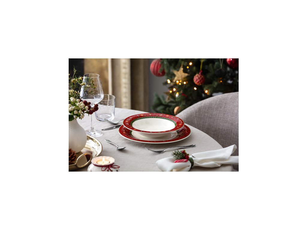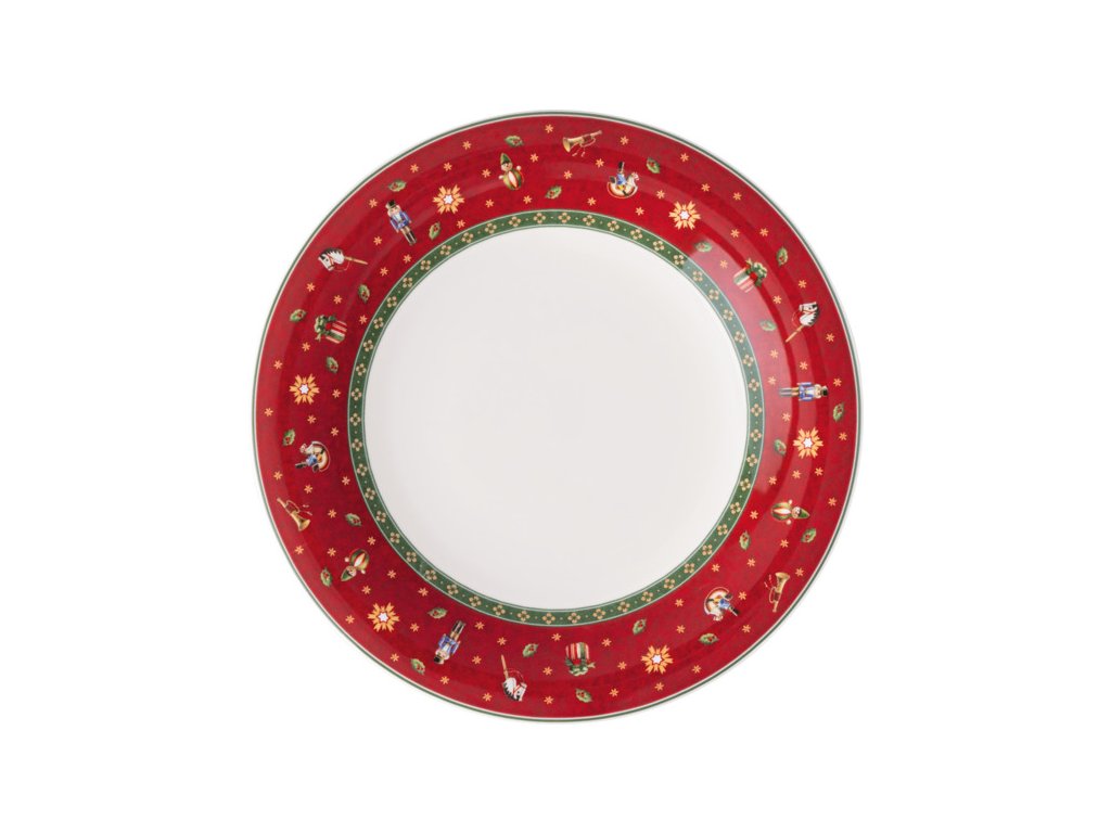 Červený plytký tanier 26,8 cm z prémiového porcelánu z najobľúbenejšej vianočnej kolekcie Toy's Delight Specials od nemeckého výrobcu Villeroy & Boch.