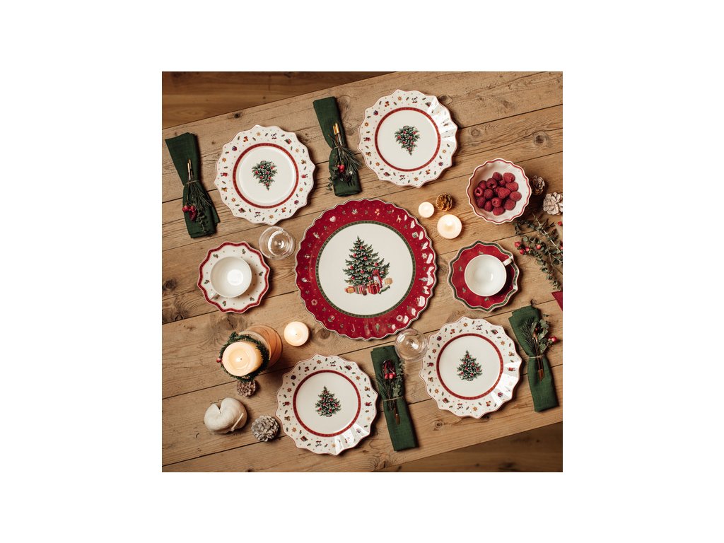 Už dlhé roky Villeroy & Boch prináša počas Vianoc porcelánovú jedálenskú kolekciu Toy's Delight. Sviatočne vyzdobený stôl zaručene vytvorí špeciálnu atmosféru vo vašom domove. Či už preferujete všetko v bielej farbe alebo klasickú kombináciu v červenej a zelenej farbe, s Toy's Delight vždy vytvoríte dokonalú scénu. A zo všetkého najlepšie je, že všetky vzory a farby môžete navzájom kombinovať. Jemné vzory hračiek rozžiaria oči najmenších.
