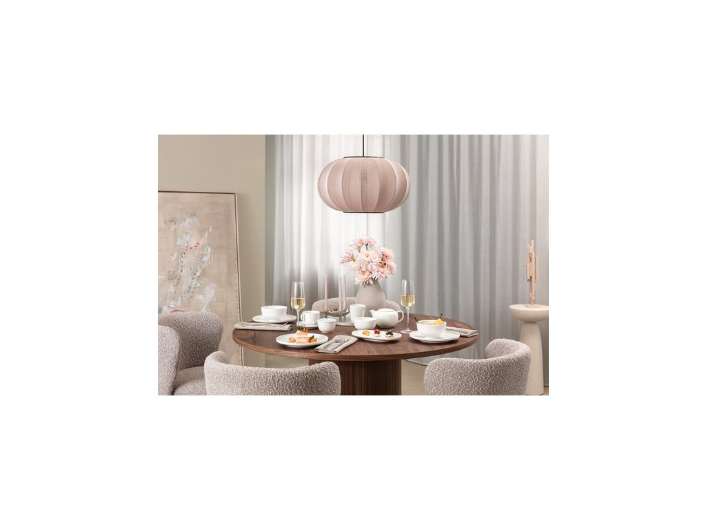 Zameranie sa na to podstatné, odstránenie prebytočného - to je minimalizmus. Ide o viac ako len trend, je to životný štýl. Kolekcia Afina dokonale zachytáva tento koncept, dodáva každodennému životu pokoj a jemný dotyk elegancie. Sofistikované tvary sú kombinované s decentným reliéfom na bielom porceláne Villeroy & Boch. Ukážkový príklad vyjadrenia vo svojej najkrajšej podobe. Najvýraznejším prvkom kolekcie Afina je jej tvar: zvýšený okraj vytvára vzrušujúci obrys, ktorý ukazuje moderný coupe tvar v úplne novom svetle. Unikátna poloha základne spôsobuje fascinujúci tieňový efekt a budí dojem, že sa porcelán vznáša. Jemný reliéf zdobí rôzne oblasti na jednotlivých kúskoch v kolekcii. Sústredné lúče, vo vnútri alebo zvonku, na vrchnej strane alebo dole, sa prelínajú s farbou v pozadí a nerušia na pohľad. Kolekcia vznikla v spolupráci s nemeckým dizajnérom Christianom Haasom, ktorý hovorí: "S kolekciou Afina som chcel vytvoriť objekt pre svet, ktorý sa stáva stále viac digitálnym. Má výnimočný dizajn a zaujme vás aj svojim tvarom a štruktúrou." Rovnako pristupovali aj ku krištáľovým pohárom ozdobené pásikmi, ktoré symbolizujú slnečné lúče.