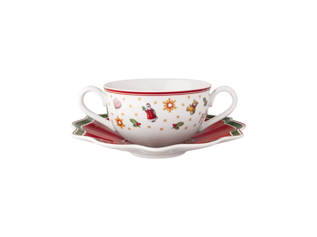 Polievková šálka 0,29 l s červenou podšálkou z prémiového porcelánu z najobľúbenejšej vianočnej kolekcie Toy's Delight od nemeckého výrobcu Villeroy & Boch.