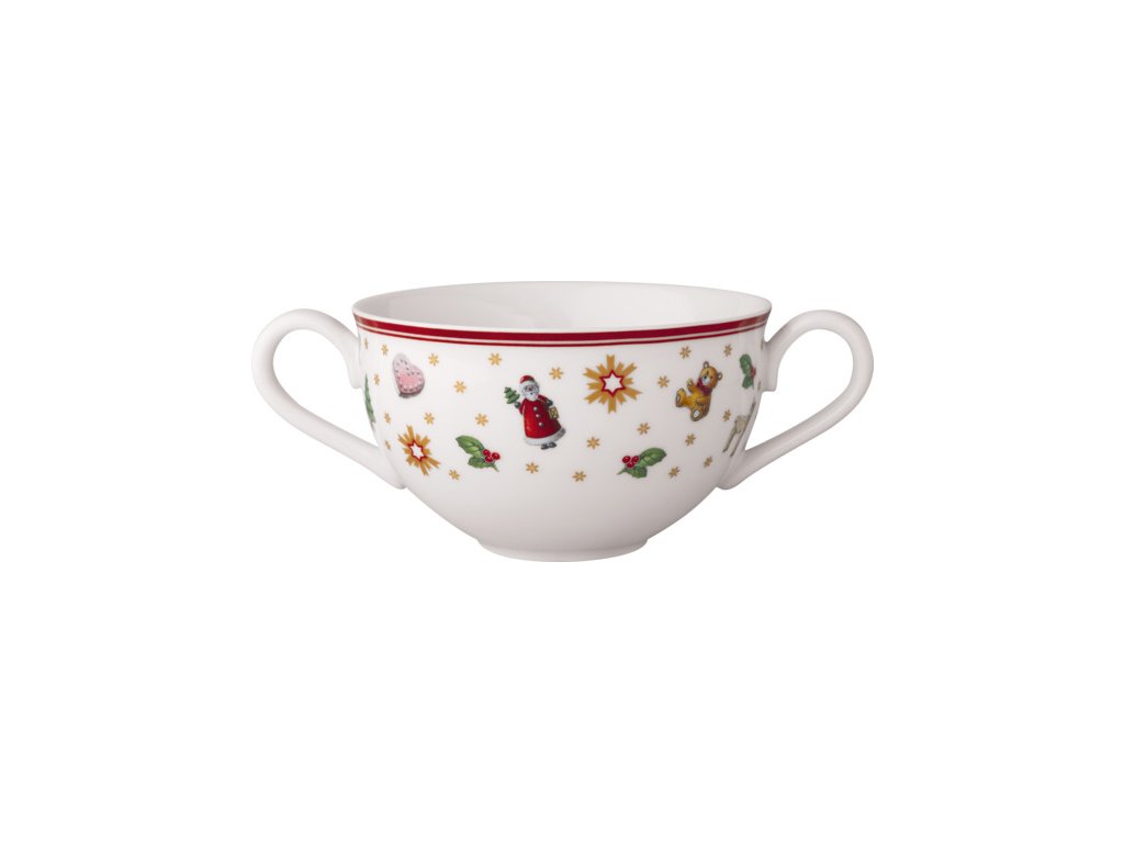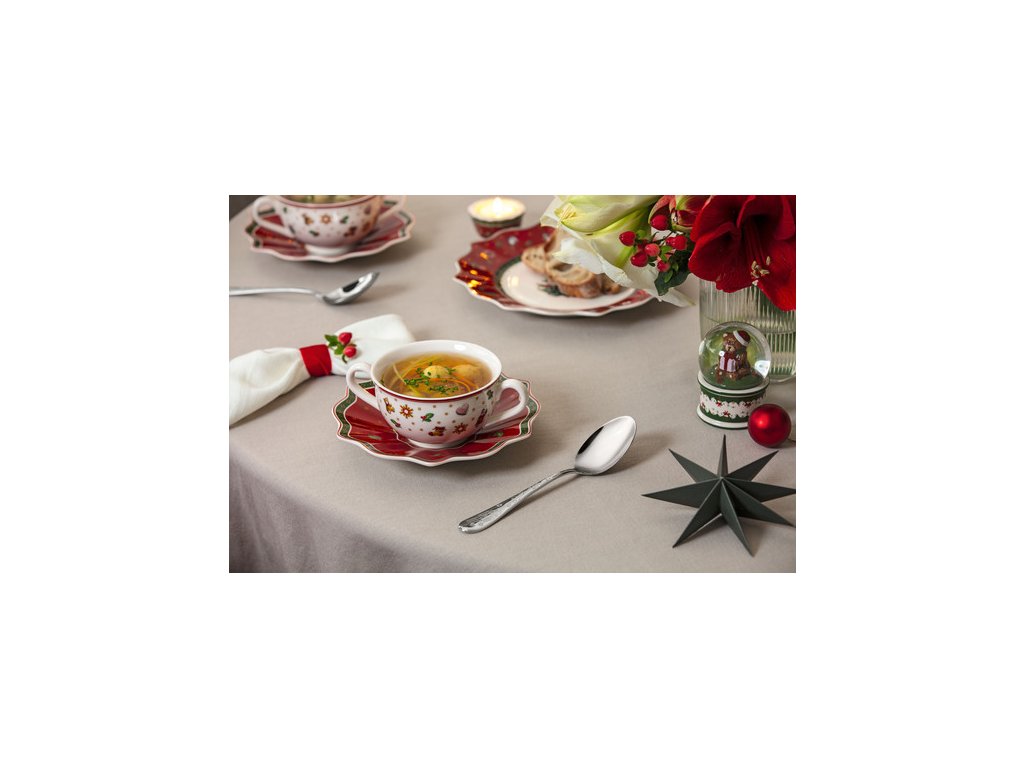 Polievková šálka 0,29 l s červenou podšálkou z prémiového porcelánu z najobľúbenejšej vianočnej kolekcie Toy's Delight od nemeckého výrobcu Villeroy & Boch.