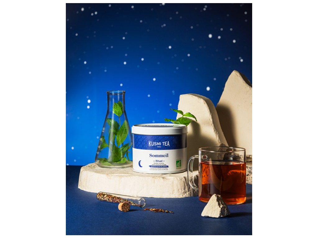 Organický bylinný čaj Sleep Ritual (sypaný, 100 g) na podporu spánku od francúzskeho výrobcu Kusmi Tea.