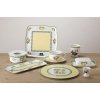 Kolekcia French Garden: svieža a farebná - klasický country štýl na každodenné použitie. Tento obľúbený porcelán má zástupy fanúšikov, ktorí majú radi veselý vzor ovocia z ovocného sadu a unikátne detaily: vlnité okraje, ručne maľované lemy a farebné pásy. Kolekcii dominuje teplá žltá farba a jemná zelená farba, ktorá vyčarí čistý pocit leta.