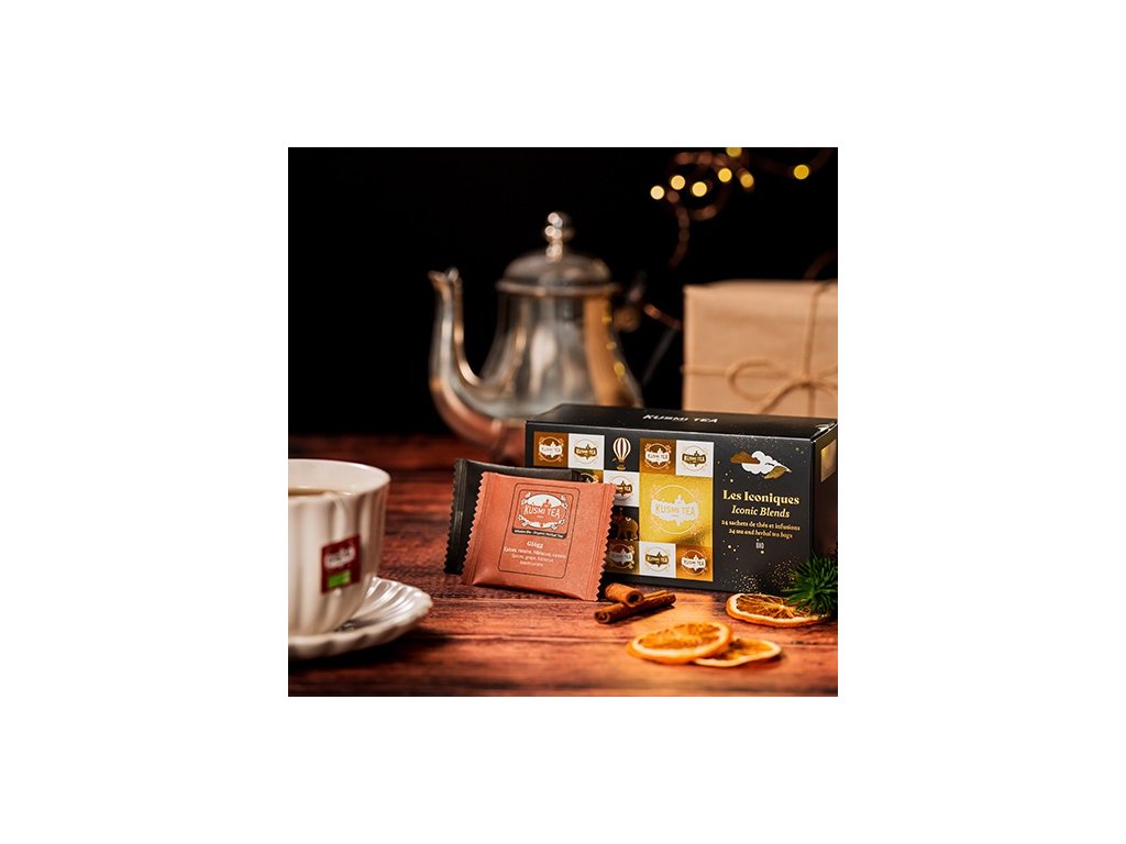 Organické zmesi čajov Iconic Blends (24 vrecúšok) pre rok 2025 od francúzskeho výrobcu Kusmi Tea.