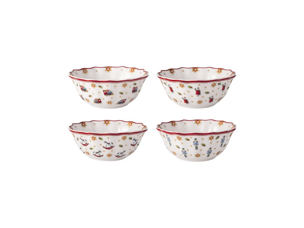 Výročná súprava misiek (4 ks) z prémiového porcelánu z najobľúbenejšej vianočnej kolekcie Toy's Delight od nemeckého výrobcu Villeroy & Boch.