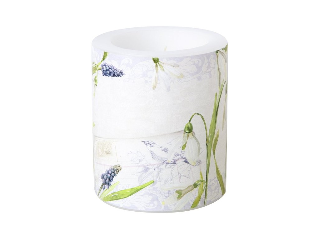 Sviečka 9 x 10,5 cm, vzor snežienka z jarnej kolekcie od nemeckého výrobcu IHR.