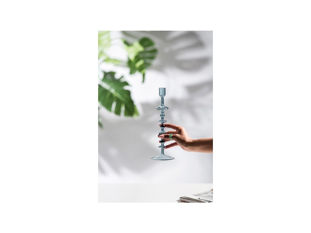 Vysoký modrý svietnik 27 cm, dizajn bublinky z borosilikátového skla z kolekcie Like Home od nemeckého výrobcu Villeroy & Boch.