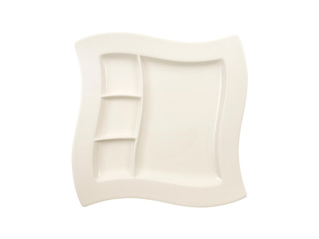 Objavte úspešný príbeh za luxusným dizajnom kolekcie NewWave. Neporovnateľné tvary porcelánu priťahujú pohľady na každom stole. Elegantný, biely riad upúta jedinečným dizajnom, ktorý dáva vyniknúť unikátnym líniam a silnej charizme. Táto kolekcia bola raz nominovaná na "TRENDOVÝ RIAD ROKA" a odvtedy sa stal skutočným predajným hitom. Progresívna forma kolekcie NewWave spôsobila revolúciu v tradičnej okrúhlej forme riadu. Geometrické tvary - štvorec, obdĺžnik a trojuholník - spojené s vlnitými krivkami sa prezentujú ako výstredná atrakcia vo svete porcelánu.