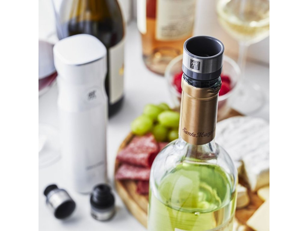 Praktické uzávery na víno z kolekcie Fresh & Save od nemeckého výrobcu Zwilling z nerezovej ocele predlžujú čerstvosť vína až 5-násobne. V kombinácii s vákuovou pumpou Fresh & Save Zwilling chránia arómu a chuť vína, džúsov či olejov. Jednoduché použitie, elegantný dizajn a sú vhodné aj do umývačky riadu.