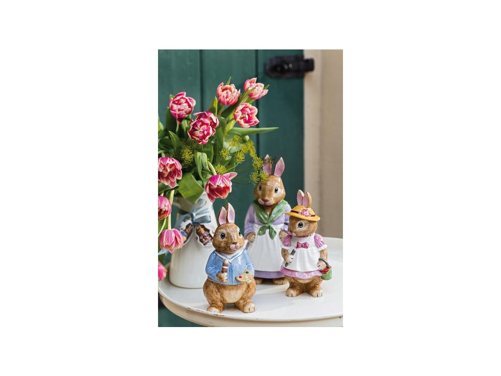 Nechajte figúrky z kolekcie Bunny Tales vám porozprávať príbeh o dedovi Hansovi, zajačikovi, ktorý učí svoje vnúčatá: Maxa, Annu a malého Paula ako sa maľujú vajíčka. Chceli by ste dodať sviatkom u vás doma nostalgický pocit alebo obdarovať vašich milovaných darčekom zo srdca? Krásne porcelánové figúrky a ozdoby zobrazujú veľa motívov z kolekcie Spring Fantasy, čím môžete obe kolekcie spolu kombinovať. Ručne maľovaná figúrka zajaca deda Maxa je dokonalá veľkonočná dekorácia k jarným kvetom na stole. Zažite magickú Veľkú noc.