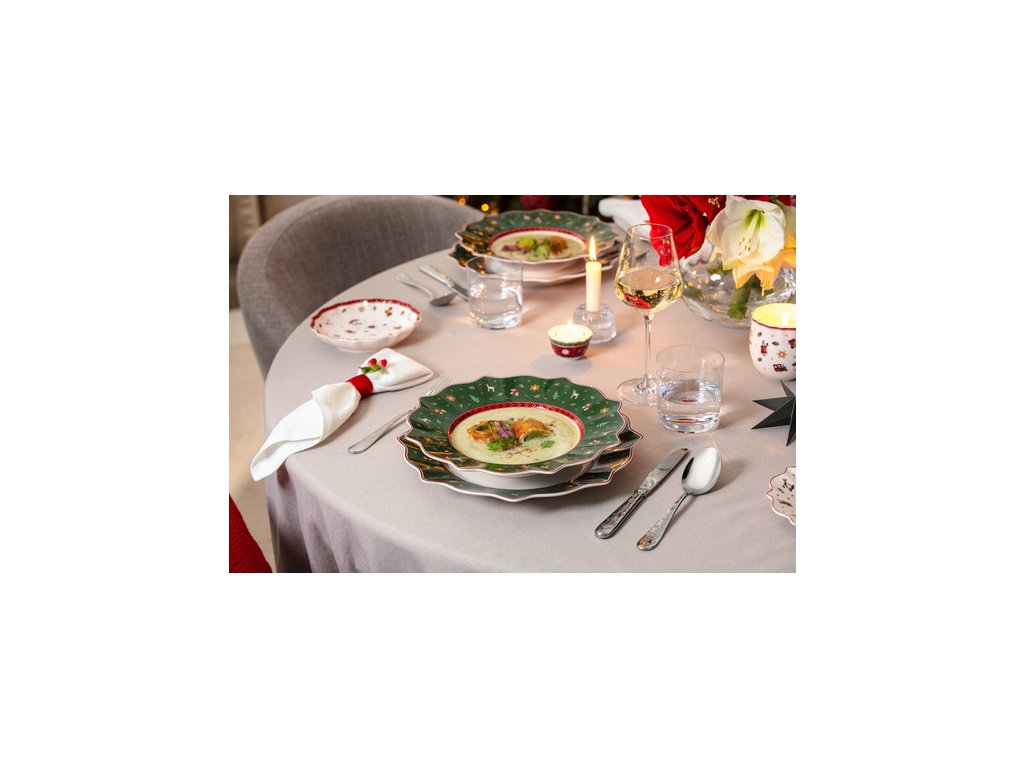 Už dlhé roky Villeroy & Boch prináša počas Vianoc porcelánovú jedálenskú kolekciu Toy's Delight. Sviatočne vyzdobený stôl zaručene vytvorí špeciálnu atmosféru vo vašom domove. Či už preferujete všetko v bielej farbe alebo klasickú kombináciu v červenej a zelenej farbe, s Toy's Delight vždy vytvoríte dokonalú scénu. A zo všetkého najlepšie je, že všetky vzory a farby môžete navzájom kombinovať. Jemné vzory hračiek rozžiaria oči najmenších.