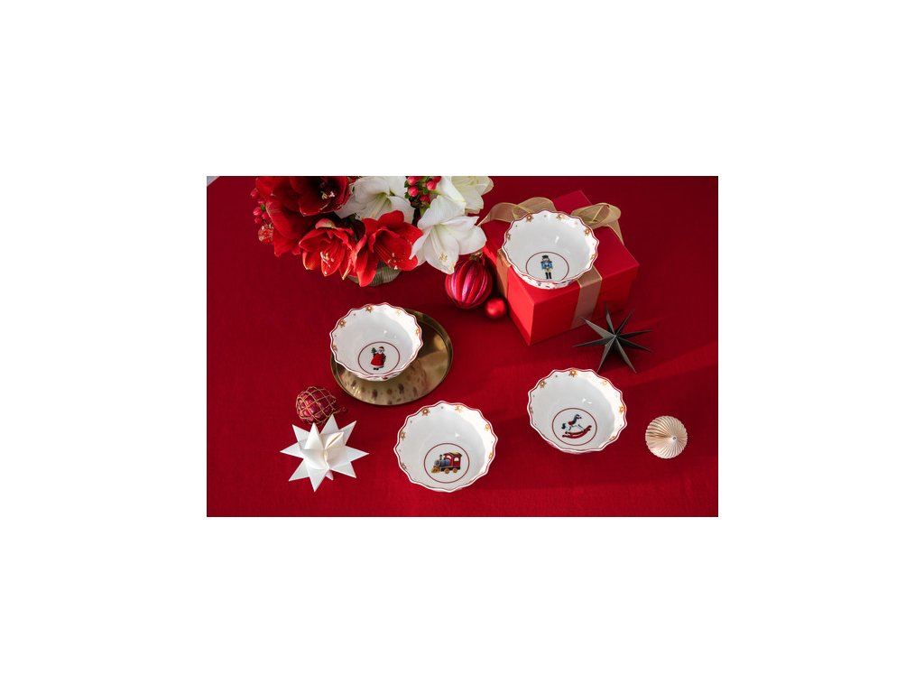 Už dlhé roky Villeroy & Boch prináša počas Vianoc porcelánovú jedálenskú kolekciu Toy's Delight. Sviatočne vyzdobený stôl zaručene vytvorí špeciálnu atmosféru vo vašom domove. Či už preferujete všetko v bielej farbe alebo klasickú kombináciu v červenej a zelenej farbe, s Toy's Delight vždy vytvoríte dokonalú scénu. A zo všetkého najlepšie je, že všetky vzory a farby môžete navzájom kombinovať. Jemné vzory hračiek rozžiaria oči najmenších.