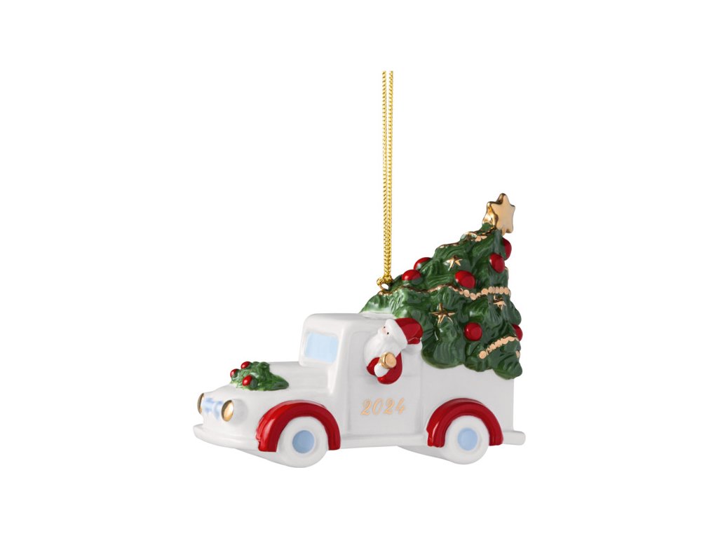 Limitované závesné autíčko s vianočným stromčekom 2024 z prémiového porcelánu z kolekcie Christmas Classics od nemeckého výrobcu Villeroy & Boch.