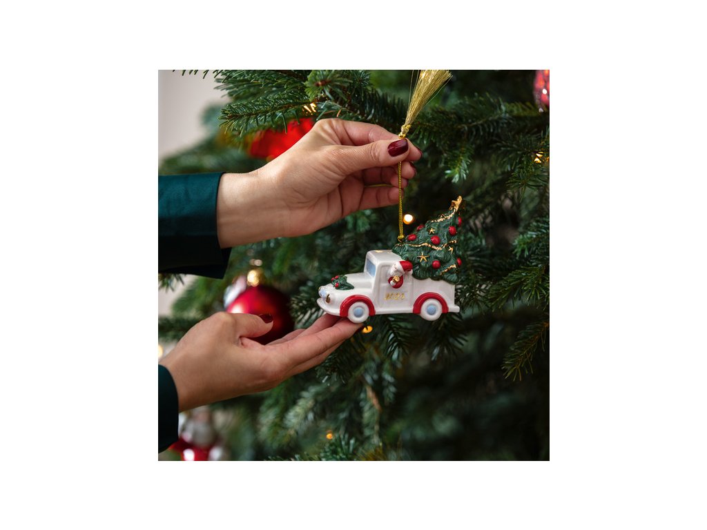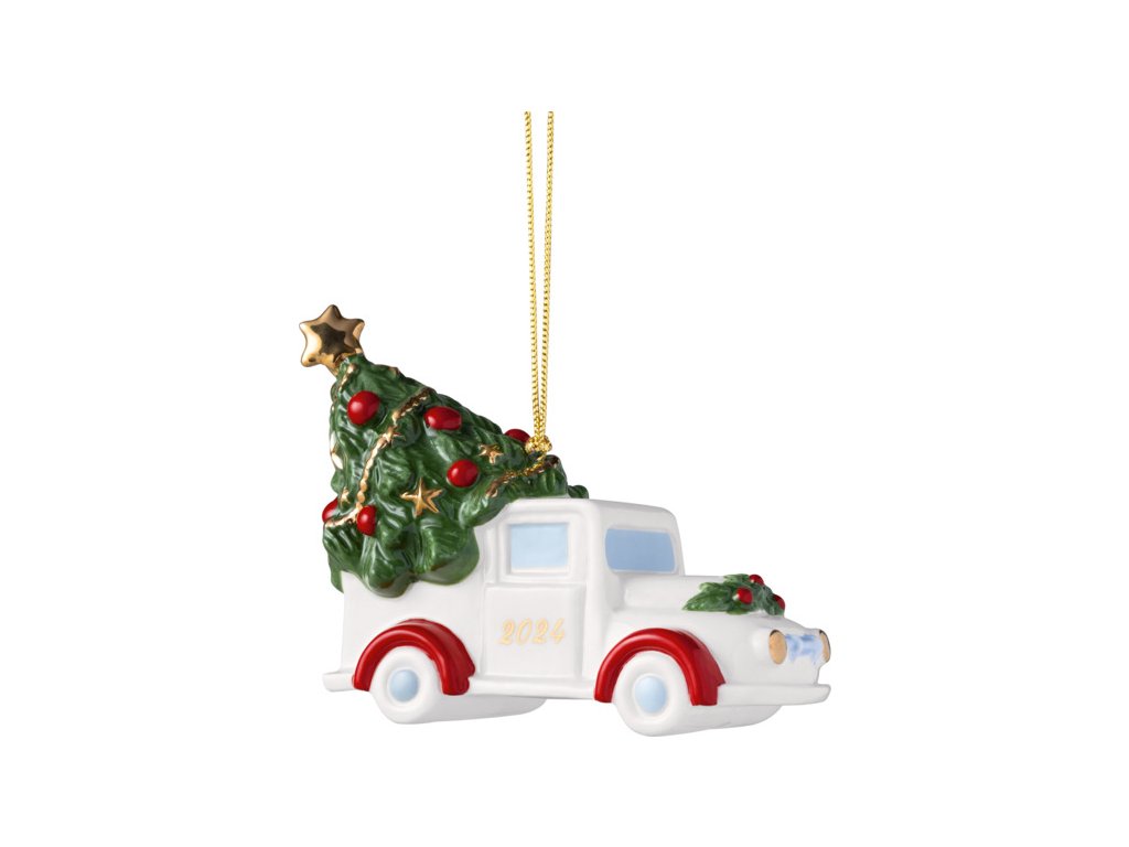 Limitované závesné autíčko s vianočným stromčekom 2024 z prémiového porcelánu z kolekcie Christmas Classics od nemeckého výrobcu Villeroy & Boch.
