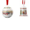 Závesné ozdoby (zvonček a guľa) z prémiového porcelánu z výročnej kolekcie 2023 Weihnachstklänge s ilustráciami od Renáty Fučíkovej od nemeckého výrobcu Hutschenreuther.