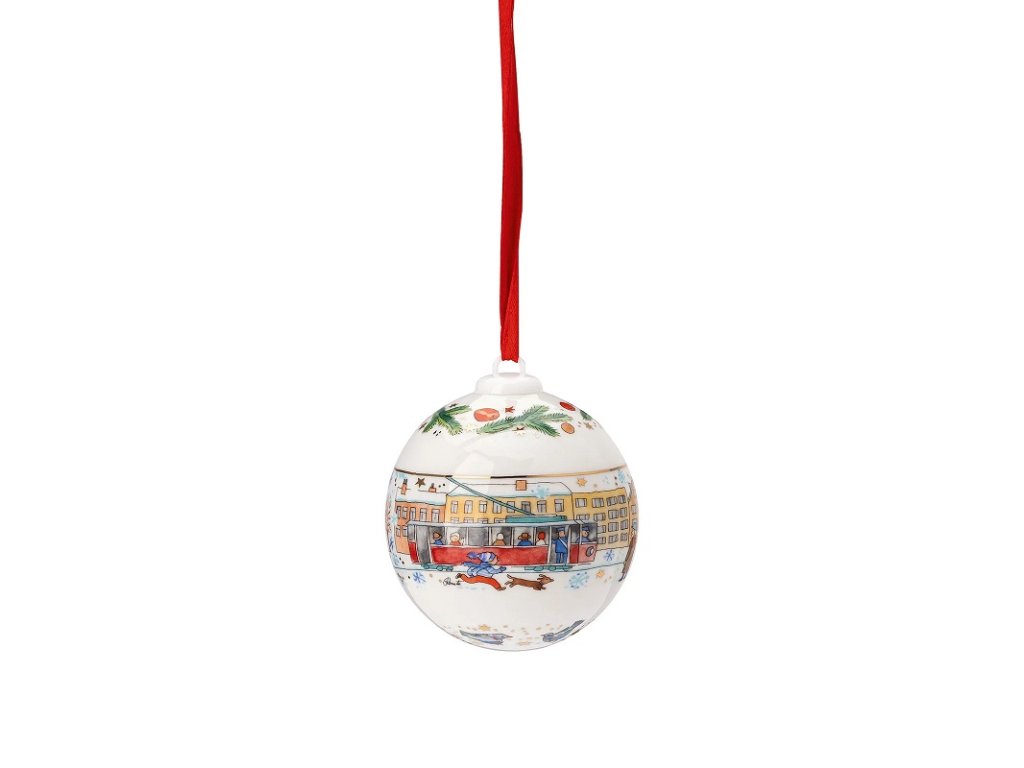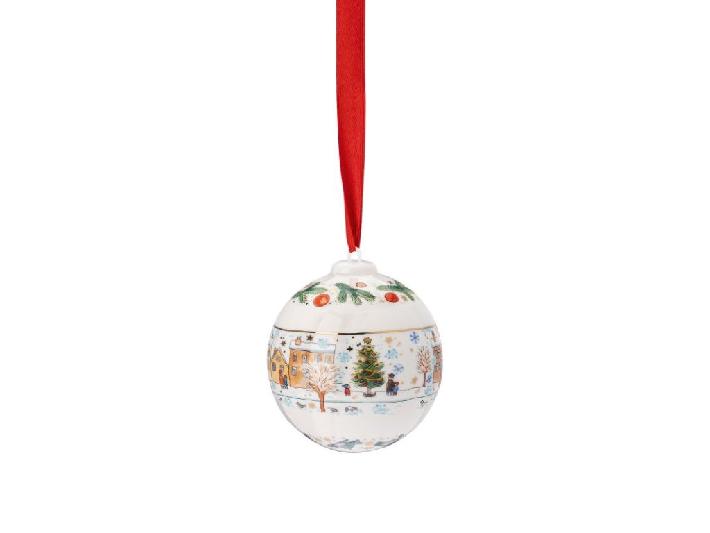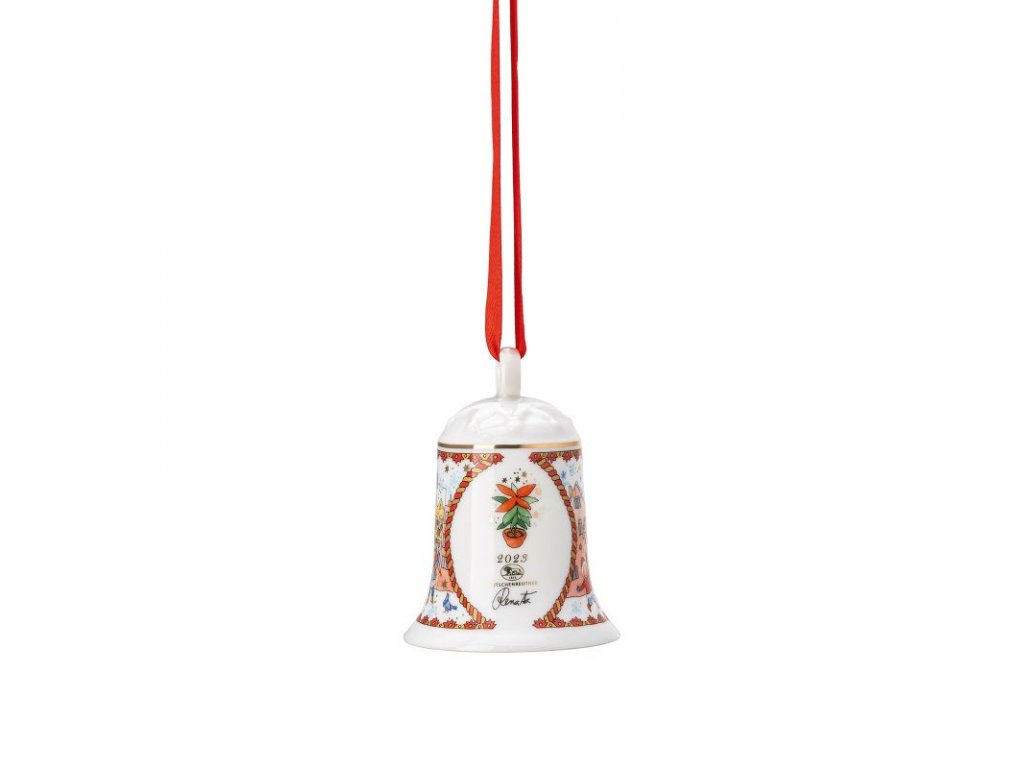 Závesné ozdoby (zvonček a guľa) z prémiového porcelánu z výročnej kolekcie 2023 Weihnachstklänge s ilustráciami od Renáty Fučíkovej od nemeckého výrobcu Hutschenreuther.