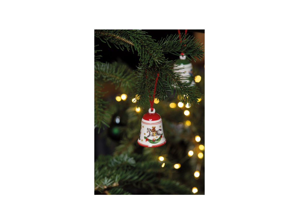 Závesný červený zvonček s motívom hračiek z prémiového porcelánu z kolekcie My Christmas Tree od nemeckého výrobcu Villeroy & Boch.