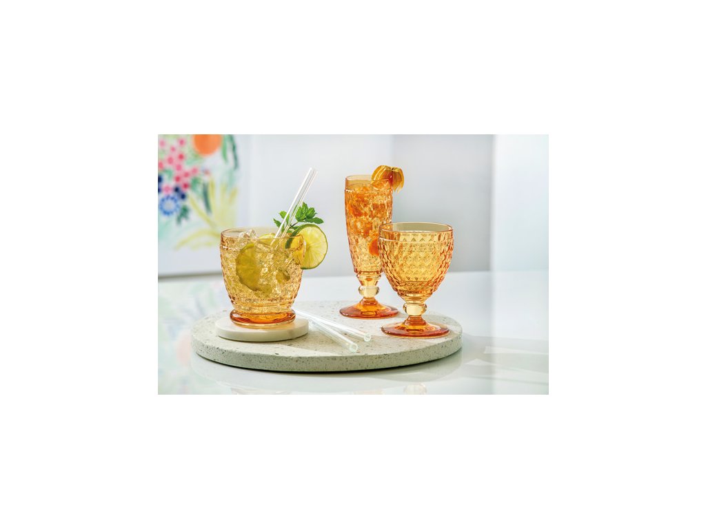Očarujúci fazetový dizajn a robustné vysokokvalitné krištáľové farebné sklo robia z kolekcie Boston coloured atraktívneho spoločníka na každý deň. Servírujte chladenú minerálnu vodu, čerstvo odšťavenú pomarančovú šťavu alebo osviežujúci nápoj s nábojom. Uhaste smäd štýlovo.